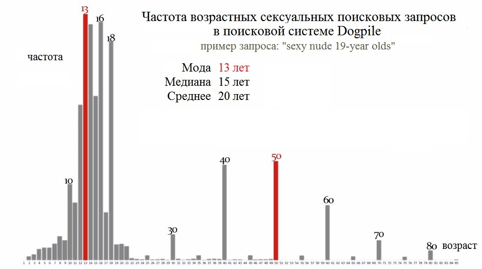 Тот факт, что наиболее популярный возраст порноактрис это минимальный допустимый законом возраст (18 лет), ясно говорит о том, что потребитель жаждет девочек более юного возраста. Если бы не было никаких правовых ограничений, то наиболее популярныё возраст девушек в порно был бы, скорее всего, на несколько лет младше.